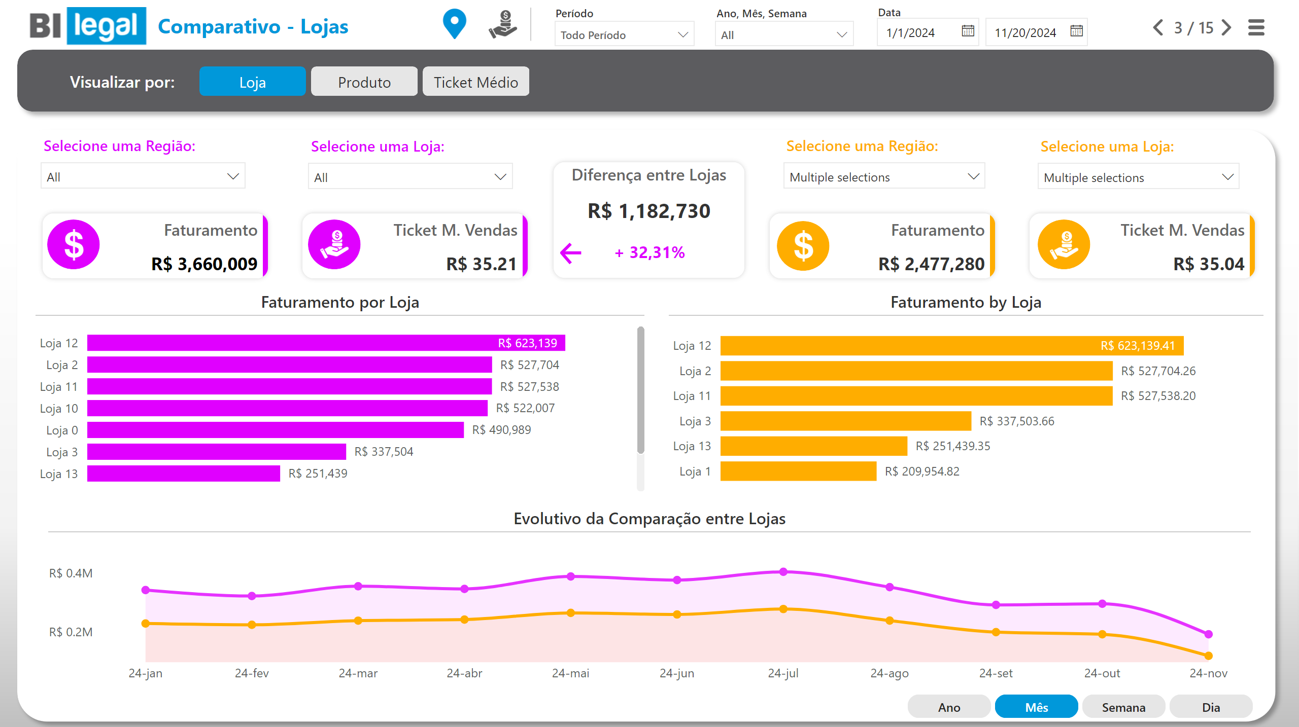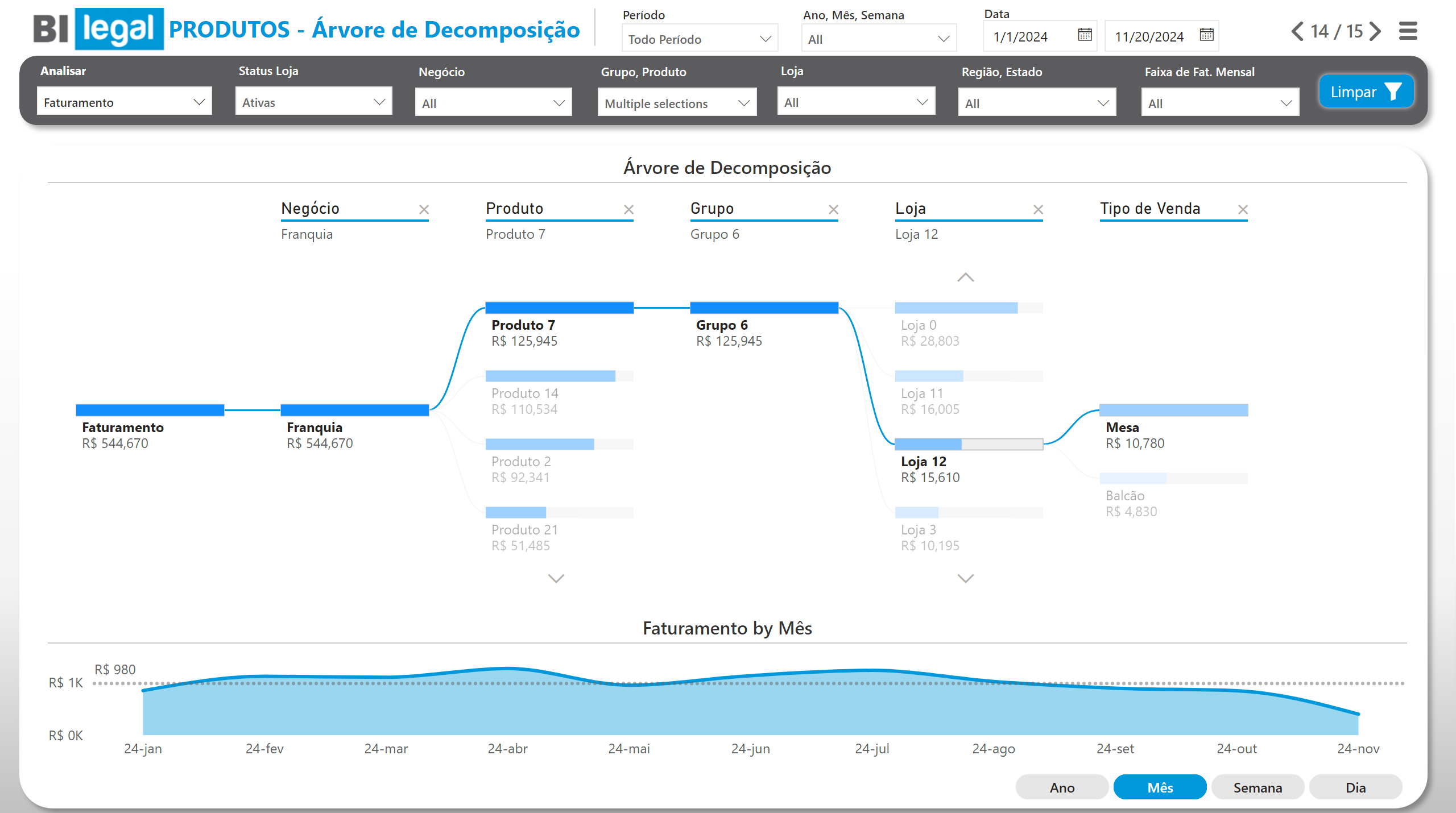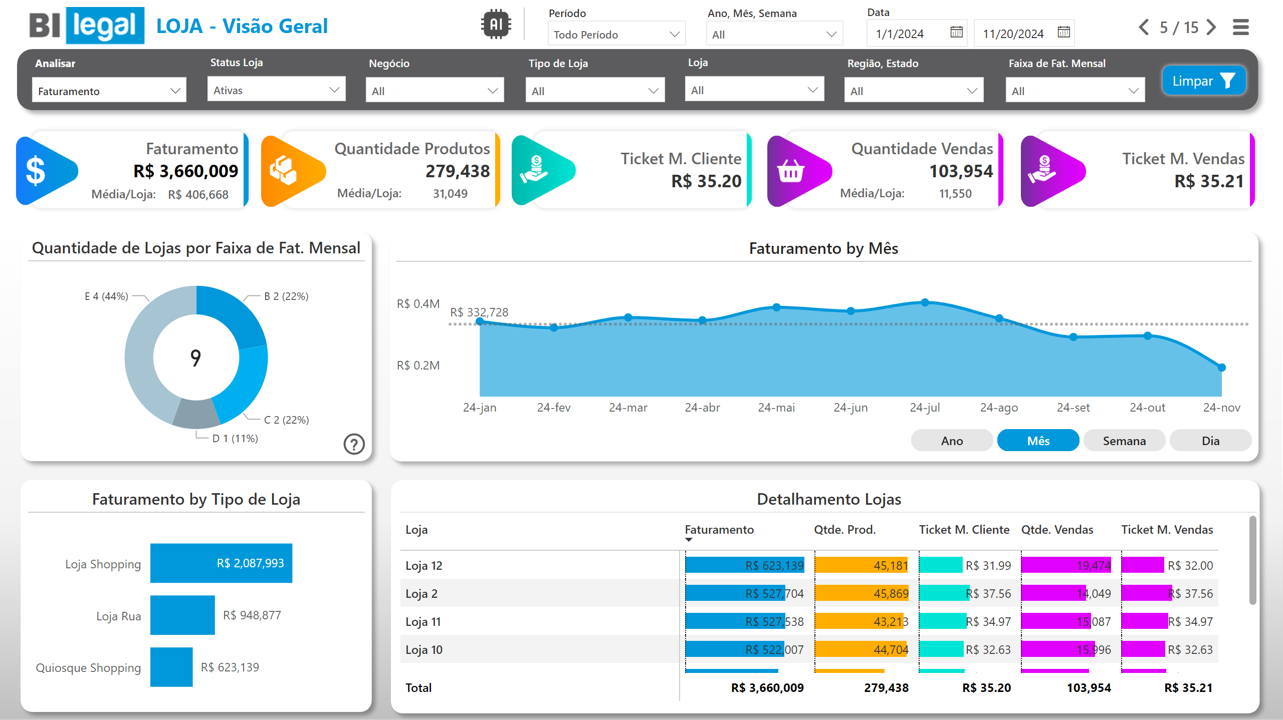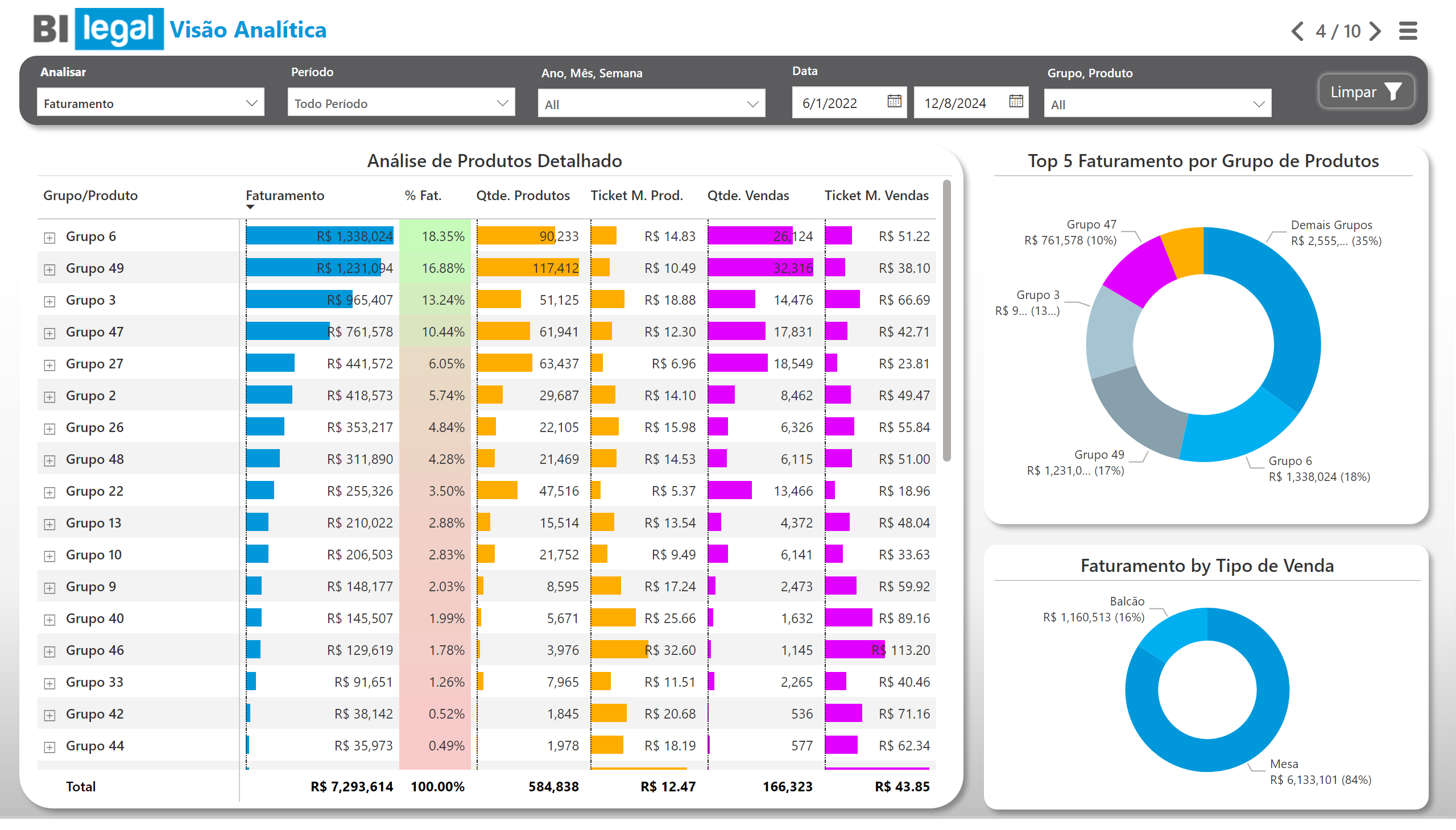 Aplicativo de Business Intelligence com dashboards e indicadores de performance integrados ao BI Legal, sob medida para food service e varejo.