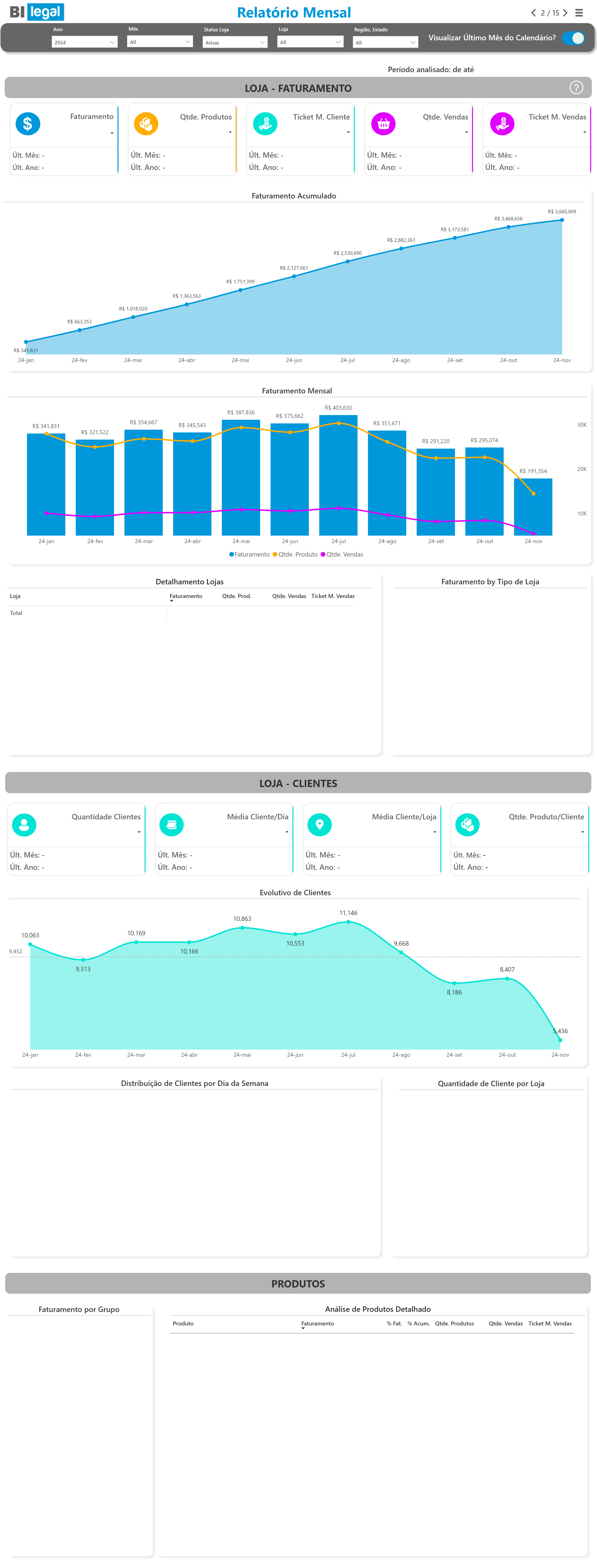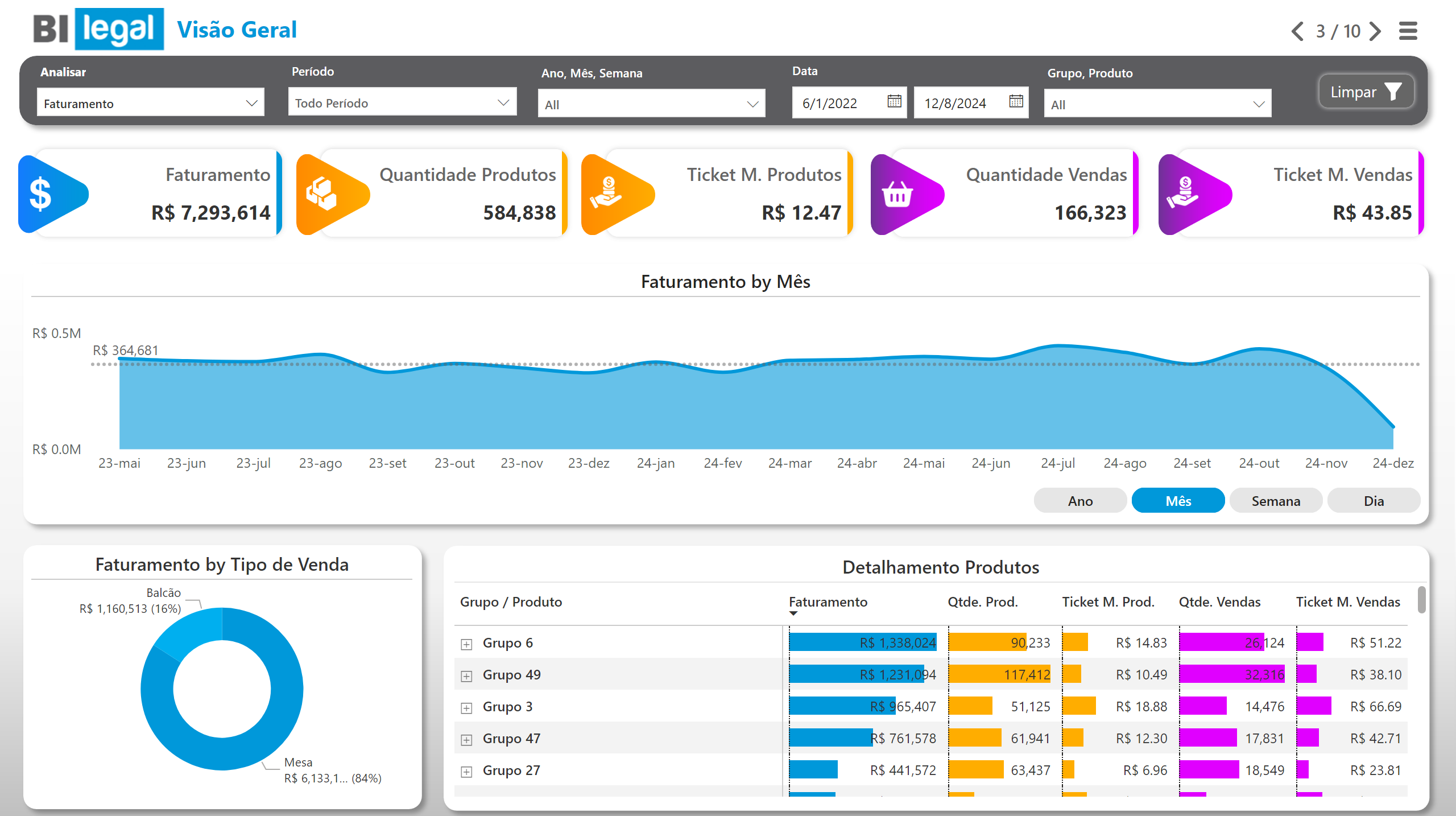 • Faturamento, Qntd. Vendas, Produtos e Ticket Médio